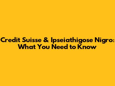 Hey guys! Let's dive into something that's been making waves: the connection between Credit Suisse and Ipseiathigose Nigro. Now, I know that name might sound a bit like a spell from a fantasy novel, but trust me, it's a real thing, and understanding it is super important, especially if you're keeping an eye on the financial world. We're going to break down what Credit Suisse is all about, what role Ipseiathigose Nigro plays, and why this partnership, or any interaction between them, matters to you. Stick around, because by the end of this, you'll have a much clearer picture of this complex financial landscape.