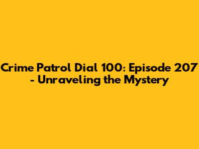 Crime Patrol Dial 100 Episode 207: A Detailed Look