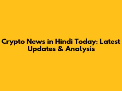 Crypto News In Hindi Today: Latest Updates & Analysis