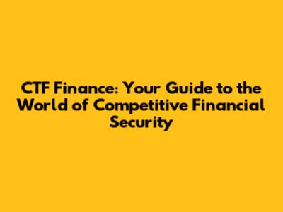 CTF Finance: Your Guide To The World Of Competitive Financial Security