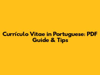 Currículo Vitae In Portuguese: PDF Guide & Tips