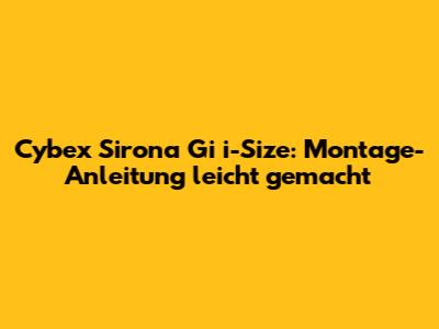 Cybex Sirona Gi I-Size: Montage-Anleitung Leicht Gemacht