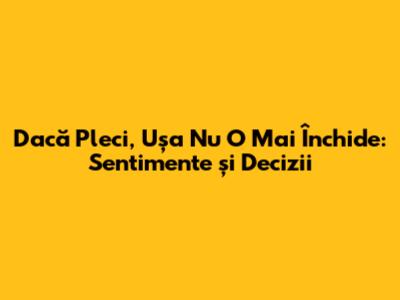 Când vine vorba de relații și despărțiri, expresia "dacă pleci, ușa nu o mai închide" aduce cu sine un amalgam complex de emoții și implicații. Ce înseamnă cu adevărat această frază? Ei bine, hai să o descompunem împreună, ca să înțelegem mai bine substraturile sale și cum se aplică în viața reală. Nu-i așa că fiecare dintre noi a trecut măcar o dată printr-o situație similară, fie că am fost cei care pleacă, fie cei care rămân cu ușa întredeschisă?