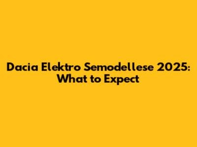 Dacia Elektro Semodellese 2025: What To Expect