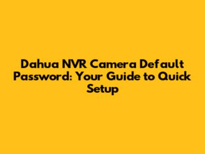 Dahua NVR Camera Default Password: Your Guide To Quick Setup