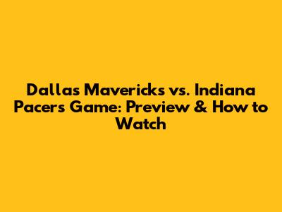 Dallas Mavericks Vs. Indiana Pacers Game: Preview & How To Watch