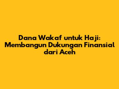 Dana Wakaf Untuk Haji: Dukungan Finansial Dari Aceh