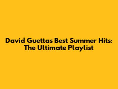 David Guetta's Best Summer Hits: The Ultimate Playlist