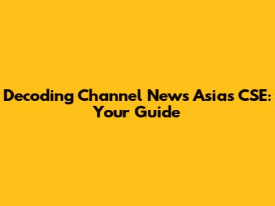 Decoding Channel News Asia's CSE: Your Guide