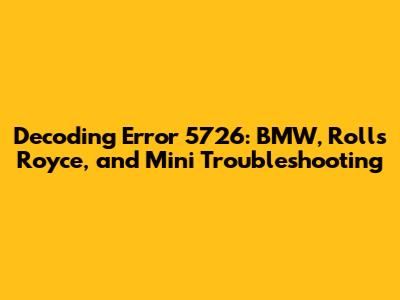 Hey guys! Ever seen the dreaded Error 5726 pop up on your BMW, Rolls Royce, or Mini? Don't sweat it! This guide is all about helping you understand what this error code means, what causes it, and how you can get your luxury ride back on the road. We'll break down everything in a way that's easy to follow, whether you're a seasoned mechanic or just a car enthusiast. Let's dive in and demystify Error 5726 together!