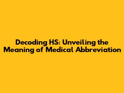 Decoding HS: The Meaning Of Medical Abbreviation