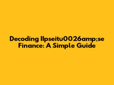 Decoding IIpseitu0026amp;se Finance: A Simple Guide