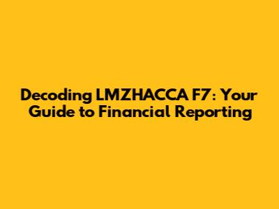 Hey there, future finance gurus! Are you diving into the exciting world of LMZHACCA F7 Financial Reporting? Awesome! This paper is a cornerstone of your ACCA journey, and it's all about understanding how companies communicate their financial performance to the outside world. Think of it as learning the language of business! In this guide, we'll break down the key concepts, explore practical applications, and give you the tools you need to ace your exams. So, buckle up, because we're about to embark on an adventure into the fascinating realm of financial reporting.