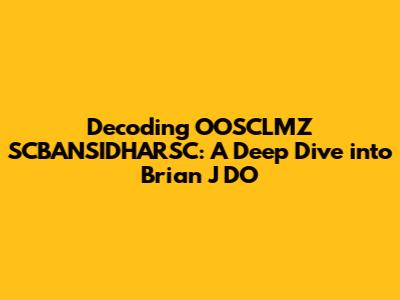 Decoding OOSCLMZ SCBANSIDHARSC: A Deep Dive Into Brian J DO