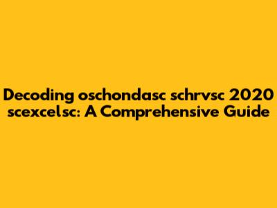 Decoding Oschondasc Schrvsc 2020 Scexcelsc: A Comprehensive Guide