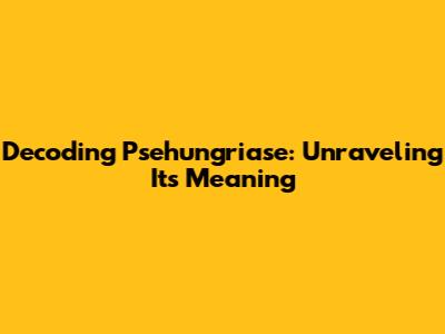 Decoding Psehungriase: Unraveling Its Meaning