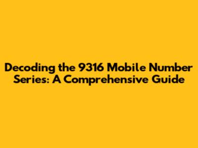 Decoding The 9316 Mobile Number Series: A Comprehensive Guide