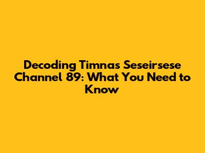 Decoding Timnas Seseirsese Channel 89: What You Need To Know