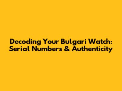 Decoding the Bulgari Watch Serial Number: What Does It Tell You?