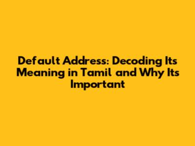 Default Address: What It Means In Tamil & Why It Matters