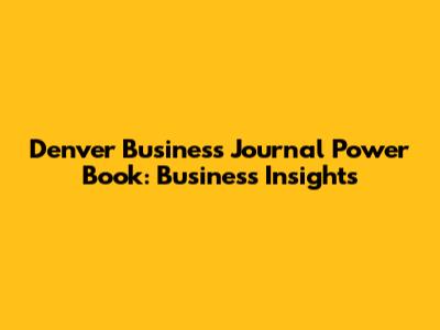 Denver Business Journal Power Book: Business Insights