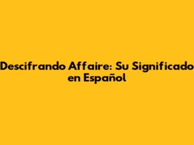 Descifrando Affaire: Su Significado En Español