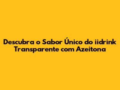 Descubra O Sabor Único Do Iidrink Transparente Com Azeitona