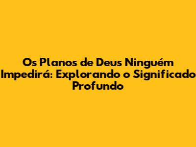 Desvendando a Promessa Divina: O Significado de "Os Planos de Deus Ninguém Impedirá"