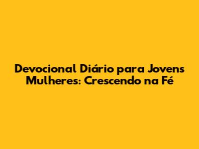 Devocional para jovens mulheres, um guia prático e inspirador para nutrir sua fé diariamente. Este devocional foi cuidadosamente elaborado para atender às necessidades e desafios específicos que as jovens mulheres enfrentam em suas vidas. Se você está em busca de um relacionamento mais profundo com Deus, deseja fortalecer sua espiritualidade e encontrar propósito em cada dia, este é o lugar certo! Prepare-se para embarcar em uma jornada de autodescoberta, crescimento espiritual e conexão com a Palavra de Deus. Vamos mergulhar em reflexões, orações e desafios que irão transformar sua vida.