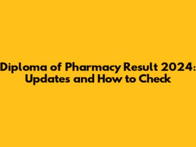 Diploma Of Pharmacy Result 2024: Updates And How To Check