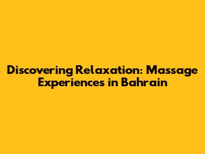 Discovering Relaxation: Massage Experiences In Bahrain