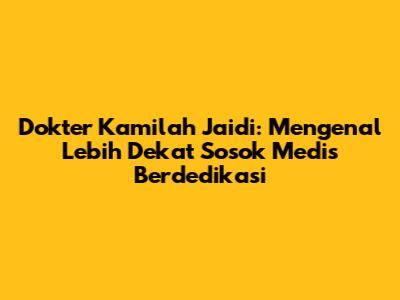 Penting untuk Diingat: Informasi dalam artikel ini didasarkan pada sumber-sumber yang tersedia dan dapat berubah sewaktu-waktu. Untuk informasi yang lebih akurat dan terkini, sebaiknya menghubungi sumber-sumber resmi atau Dokter Kamilah Jaidi secara langsung. Artikel ini dibuat sebagai bentuk apresiasi terhadap dedikasi Dokter Kamilah Jaidi dalam dunia medis dan sebagai upaya untuk memberikan informasi yang bermanfaat kepada masyarakat.