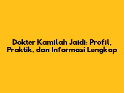 Dokter Kamilah Jaidi: Profil, Praktik, Dan Informasi Lengkap