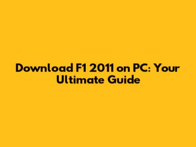 Download F1 2011 On PC: A Complete Guide