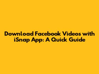 Download Facebook Videos With ISnap App: A Quick Guide