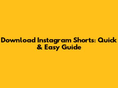 Download Instagram Shorts: Quick & Easy Guide
