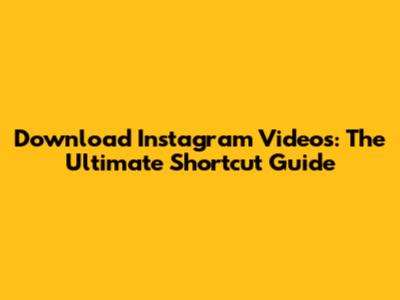 Download Instagram Videos: The Ultimate Shortcut Guide