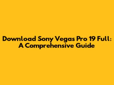 Download Sony Vegas Pro 19 Full: A Comprehensive Guide