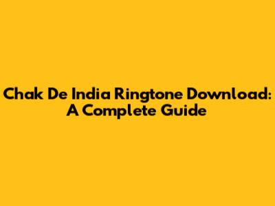 Download The Chak De India Ringtone: A Complete Guide