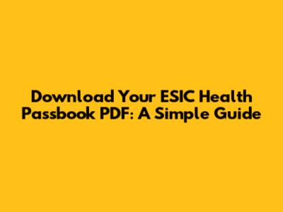 Download Your ESIC Health Passbook PDF: A Simple Guide