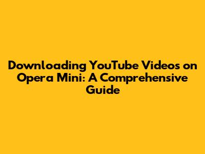 Download YouTube Videos On Opera Mini: A Quick Guide