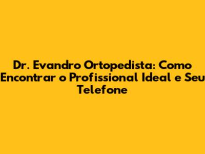 Dr. Evandro é um médico especializado em ortopedia, a área da medicina que se dedica ao estudo, diagnóstico, prevenção e tratamento de lesões e doenças do sistema musculoesquelético. Isso inclui ossos, articulações, ligamentos, tendões e músculos. Se você está sofrendo de dores nas costas, problemas nos joelhos, lesões esportivas ou qualquer outra condição relacionada a esses sistemas, um ortopedista como o Dr. Evandro pode ser exatamente o que você precisa. Ele é um profissional qualificado que pode diagnosticar seu problema e recomendar o tratamento mais adequado, seja ele fisioterapia, medicamentos, injeções ou, em alguns casos, cirurgia. Mas atenção: o Dr. Evandro é apenas um exemplo, ok? Existem muitos ortopedistas excelentes por aí, e o objetivo aqui é te ajudar a encontrar o profissional que melhor atenda às suas necessidades.