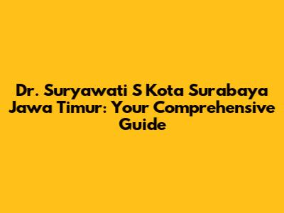 Hey everyone! Are you looking for top-notch medical care in Surabaya, East Java? Well, you're in the right place! Today, we're diving deep into the world of Dr. Suryawati S, a prominent figure in the Surabaya healthcare scene. We'll explore her expertise, location, and everything you need to know to make an informed decision about your health. So, grab a coffee (or your favorite beverage), and let's get started! Surabaya, a vibrant city in East Java, is known for its bustling streets, delicious cuisine, and, of course, its healthcare services. Navigating the healthcare system can sometimes feel overwhelming, but worry not, because this article will act as your friendly guide. We'll break down the essentials, ensuring you have all the information you need. Our main focus will be on Dr. Suryawati S, a healthcare professional who has made a significant impact in the community. We'll uncover her specialization, the services she offers, and how to reach her. This guide is designed for anyone seeking medical assistance in Surabaya, whether you're a local resident or a visitor. We'll try our best to keep things simple, easy to understand, and also fun. So, let's explore Dr. Suryawati S and the healthcare landscape of Surabaya together!