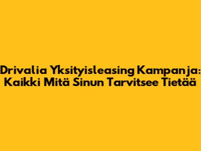 Drivalia Yksityisleasing Kampanja: Edut Ja Mahdollisuudet