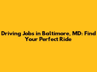 Driving Jobs In Baltimore, MD: Find Your Perfect Ride