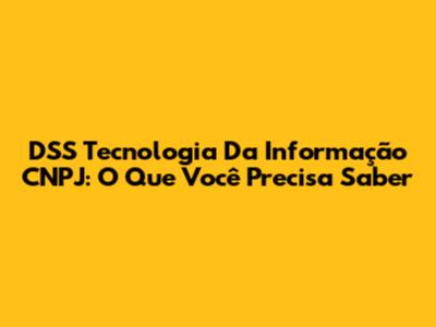 DSS Tecnologia Da Informação CNPJ: O Que Você Precisa Saber