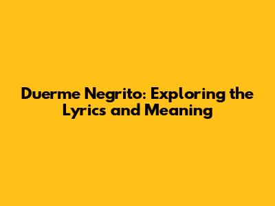 Duerme Negrito: Lyrics, Translation, And Cultural Significance