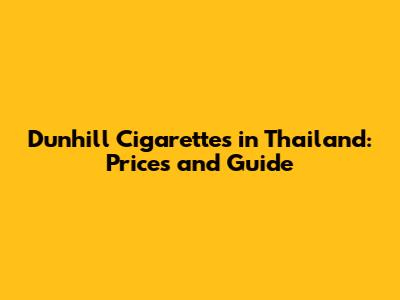 Dunhill Cigarettes In Thailand: Prices And Guide