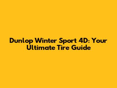 Dunlop Winter Sport 4D: Your Ultimate Tire Guide
