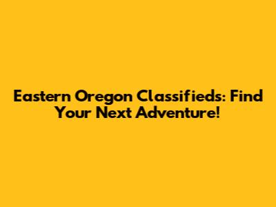Eastern Oregon Classifieds: Find Your Next Adventure!